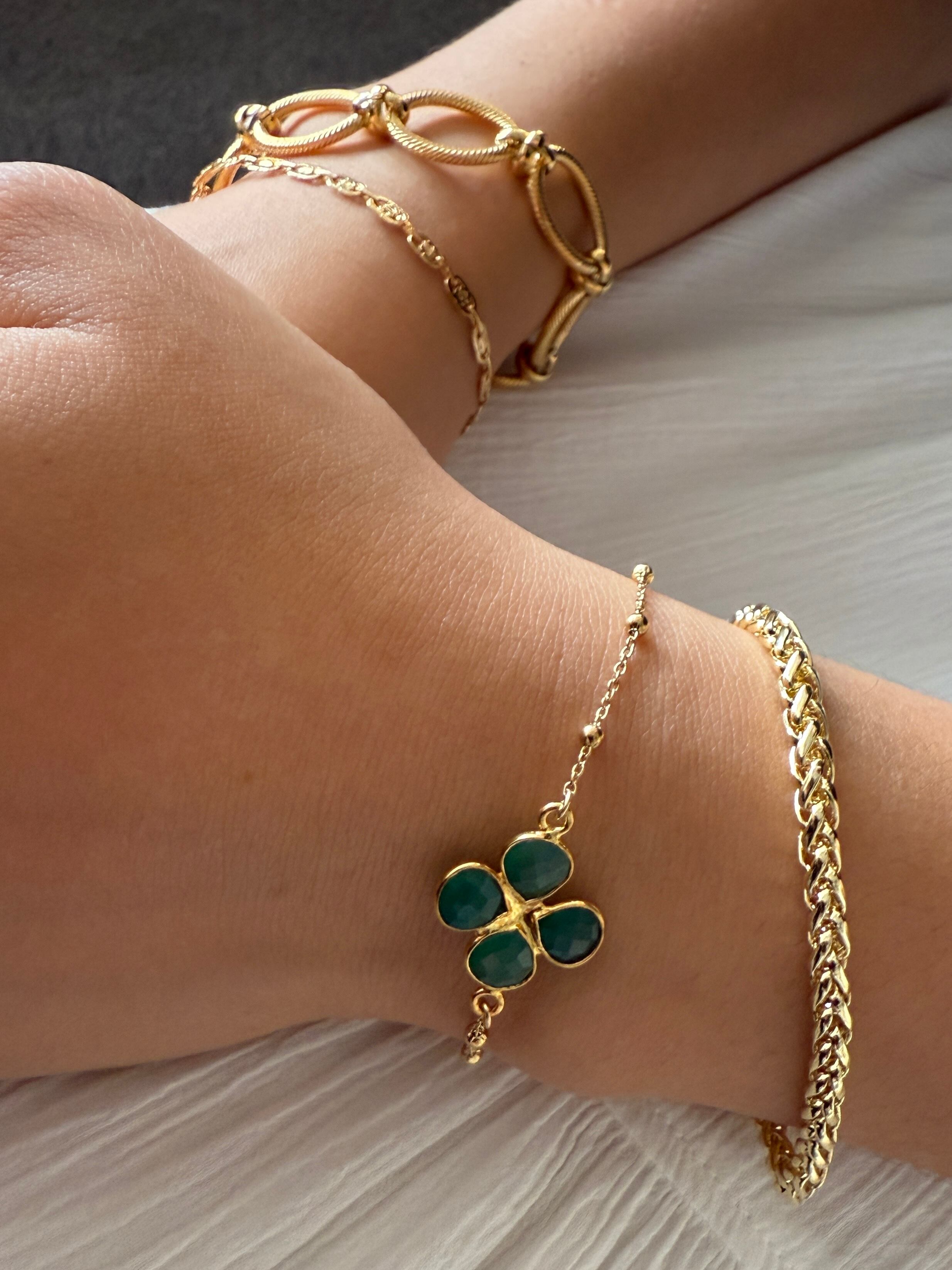 淡いグリーンのクオーツが印象的なMARGUERITE Quarz vertブレスレットは、爽やかさと気品を兼ね備えたデザイン。
