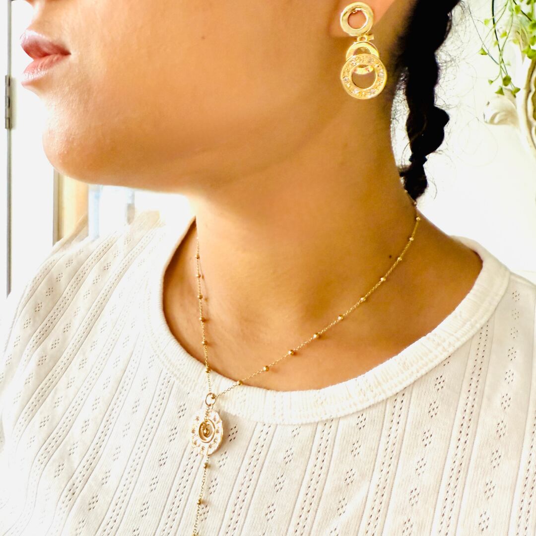 3つのリングが軽やかに揺れる3 CERCLESピアスは、動きのある印象的なデザイン。