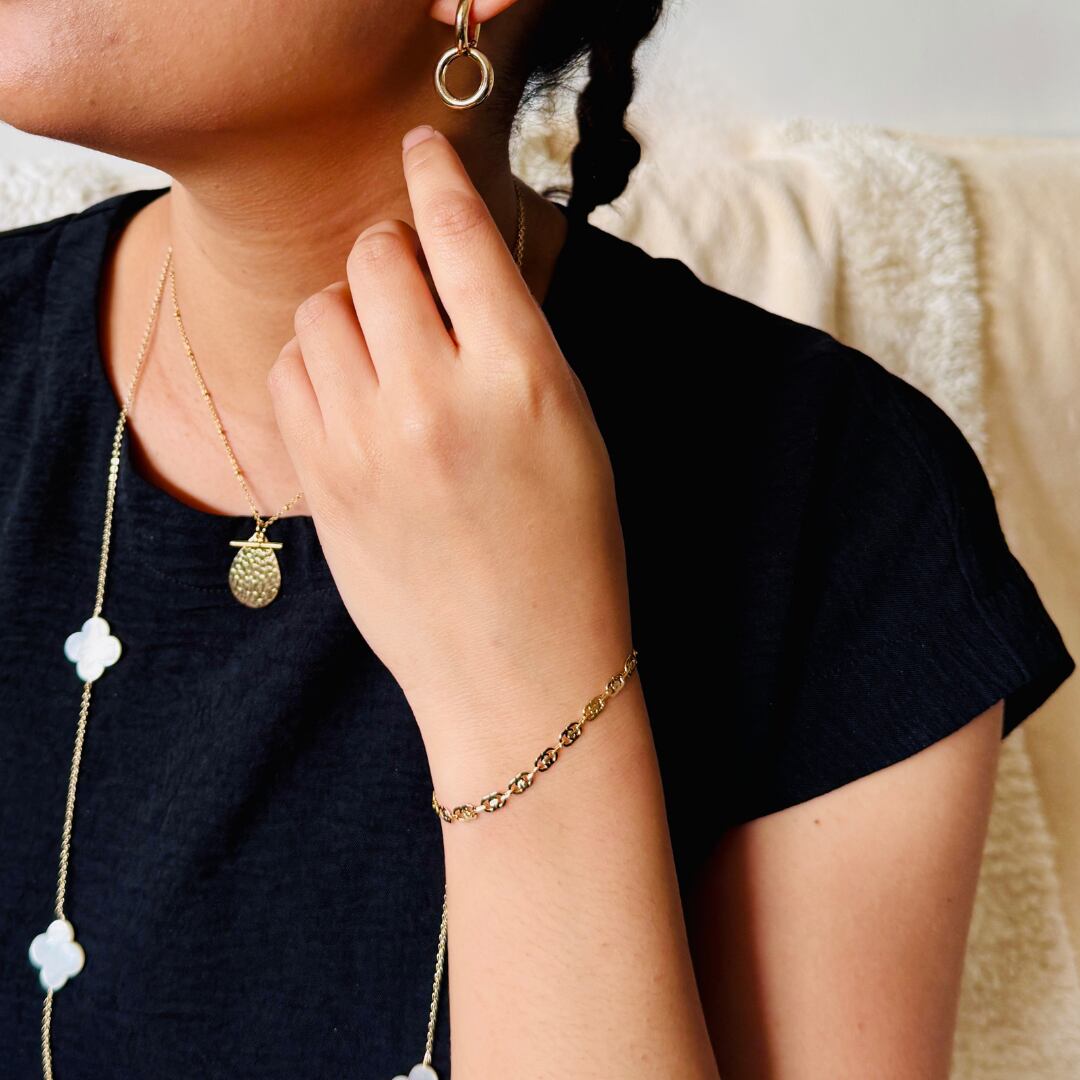 艶やかなゴールドとストーンのきらめきが重なり、光の角度によって異なる表情を見せてくれます。