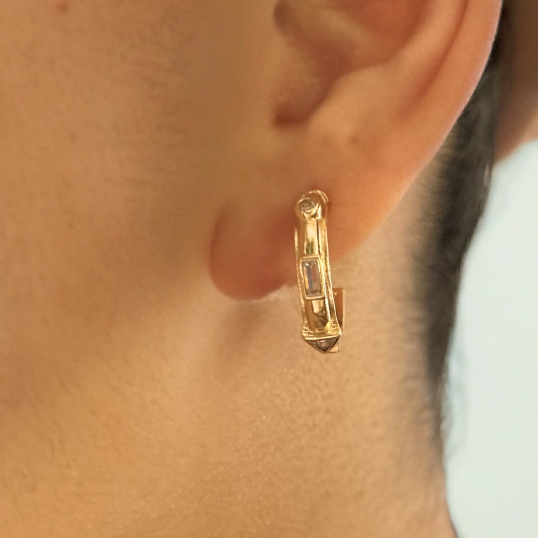 クラシックなフープに繊細なストーンの輝きを添えたデザイン。