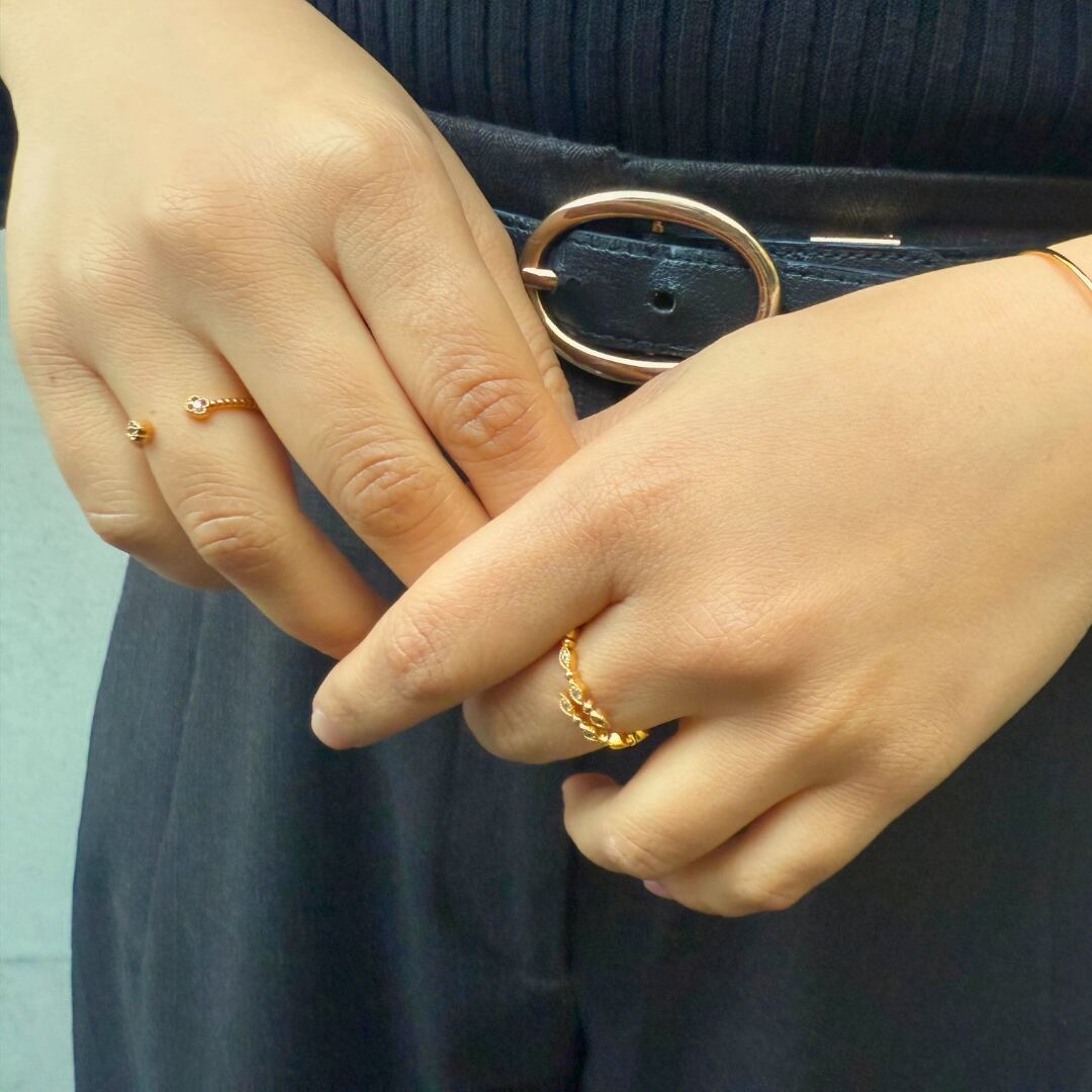 指先にやわらかな光とさりげない華やぎを生み、シンプルなコーデにも自然なアクセントになります。
